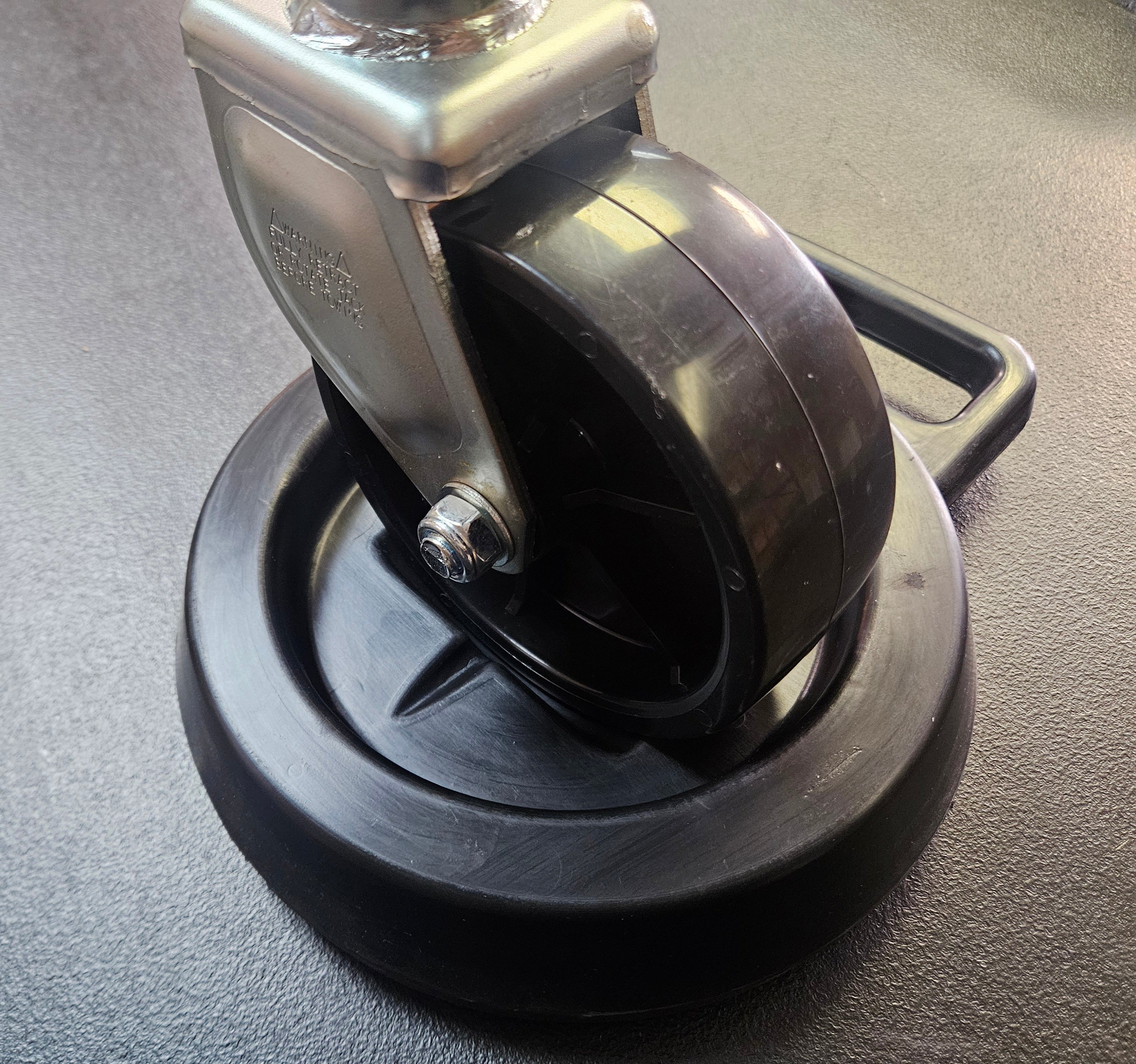 Here is our new Dolly Chock. It features a recess for 5 1/2" - 6" round foot pad and also has a divot for a wheel style tongue jack. Helps prevent your jackfoot or wheel from sinking in the ground and offers non-skid protection too. Molded from EPDM rubber and features a handle and drain hole. Made in the USA.